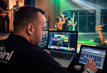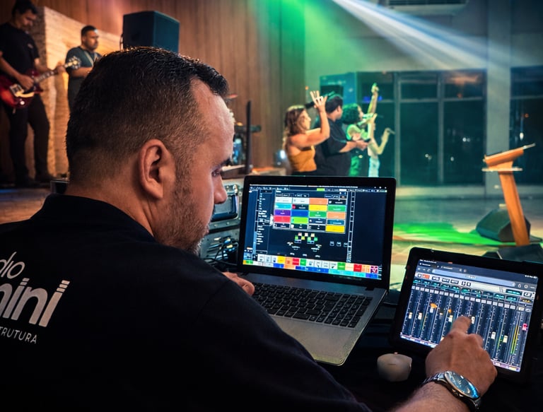 A história da nossa empresa começa de forma bem simples: com um curso para operar o som da igreja. A qualidade do trabalho chamou atenção,surgiram novos convites e, aos poucos, vieram os primeiros eventos. Com dedicação, estudo e investimento em equipamentos, o que era um serviço pontual se transformou em uma empresa focada em entregar experiências sonoras e visuais de alto nível.